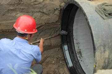 一截管道安裝完畢,王俊鉆進(jìn)了管道中,沿著新鋪設(shè)的這截6米長(zhǎng)的管道,一邊爬一邊觀察,檢查管道接口處的皮圈是否有縫隙,有沒(méi)有受擠壓而外露。見(jiàn)皮圈處平整無(wú)縫,王俊才放心地爬了出來(lái)。盡管當(dāng)天氣溫不高,但管道中密不透風(fēng),讓人喘不過(guò)氣,一趟爬下來(lái),王俊的腦門(mén)上布了一層細(xì)細(xì)的汗珠。