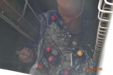 水廠機修人員下到12米沉水井內(nèi)的漏水點,詳細檢查后發(fā)現(xiàn)2號取水泵底座共6個固定螺絲,2個已斷裂,3個已松動,導(dǎo)致2號取水泵運行時底座不穩(wěn),嚴重影響供水安全,機修人員立即向公司領(lǐng)導(dǎo)匯報,制定了維修方案。