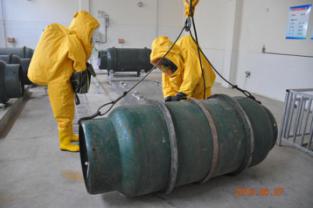 在總指揮趙建同志的哨響聲下,應(yīng)急救援演練活動(dòng)正式開始。氯氣泄漏事故模擬現(xiàn)場(chǎng)煙霧彌漫,漏氯泄漏報(bào)警儀發(fā)出尖銳的報(bào)警信號(hào),現(xiàn)場(chǎng)指揮人員立即發(fā)出指令,啟動(dòng)緊急處置預(yù)案。警戒疏散小組、搶修小組、消防小組各組成員第一時(shí)間趕到事故現(xiàn)場(chǎng),搶修人員迅速穿好防化服進(jìn)入氯庫(kù),將氯瓶的泄漏點(diǎn)封住,放置于堿池中,防止氯氣繼續(xù)泄漏造成更大的危險(xiǎn)。與此同時(shí),警戒疏散小組設(shè)立崗哨,拉起警戒線,負(fù)責(zé)氯瓶間工作人員安全撤離。消防小組啟用消防水管噴灑大量水,稀釋空氣中的氯氣,防止空氣中的氯氣含量超標(biāo)發(fā)生二次傷害。此次演練行動(dòng)迅速,全程用時(shí)16分鐘,有效處理了氯氣泄漏,取得了預(yù)期效果。