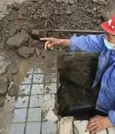 接著報(bào)單、通知維修隊(duì)開(kāi)挖,“功夫不負(fù)有心人”,當(dāng)維修工作坑挖至地面一下約1米左右的地方,水流上涌,這段DN110的PE管漏點(diǎn)被精準(zhǔn)找到維修??粗S修人員停水、維修、恢復(fù)供水一氣呵成,用戶(hù)們一顆懸著的心也終于放下。